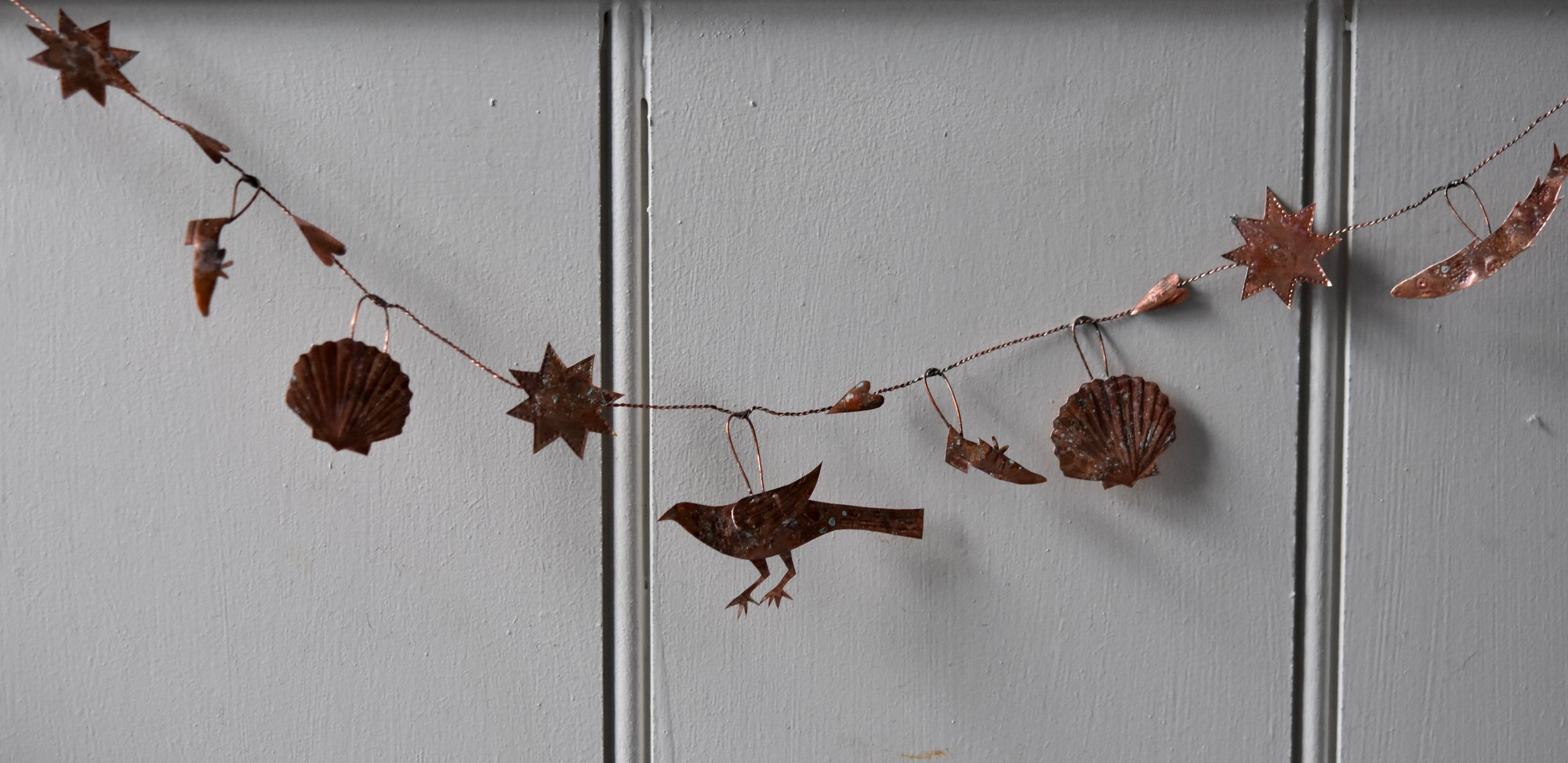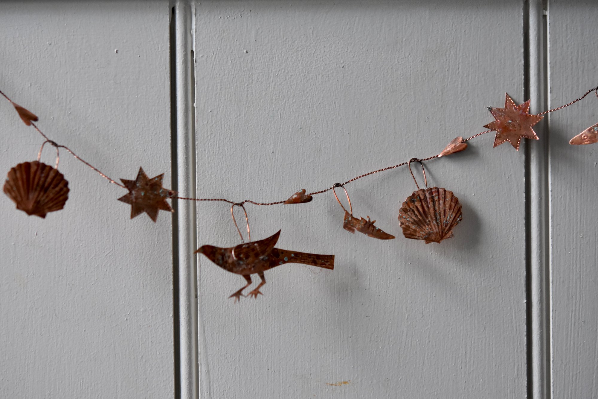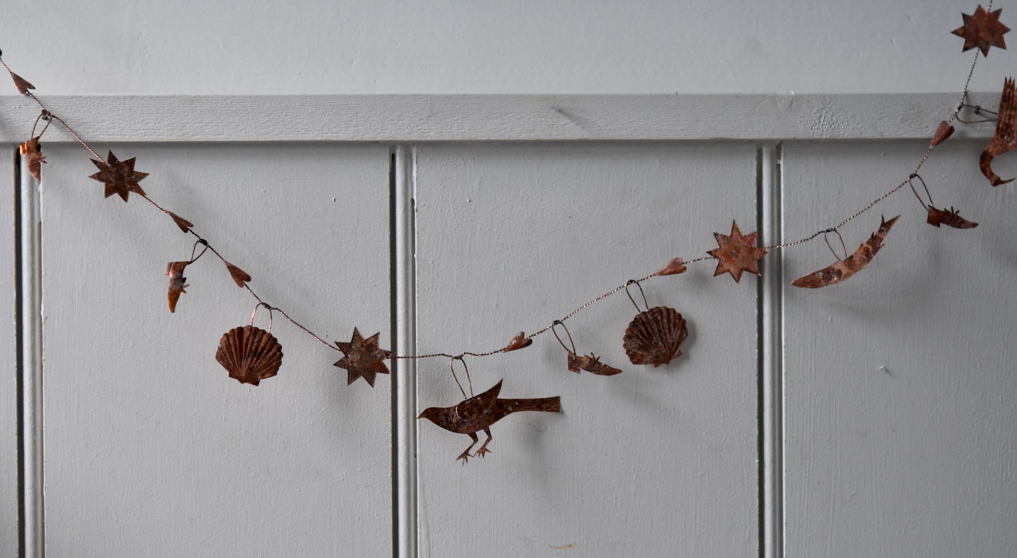Delicate copper and wire garland with an aged patina