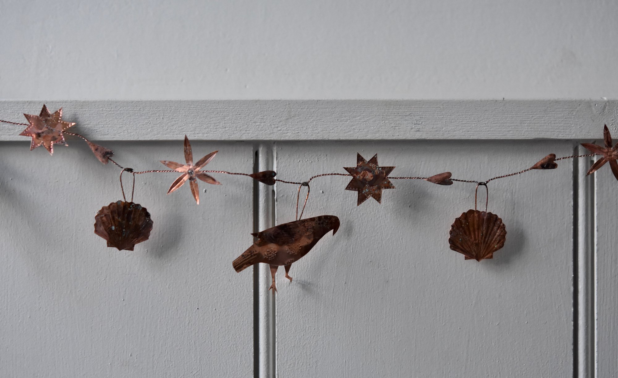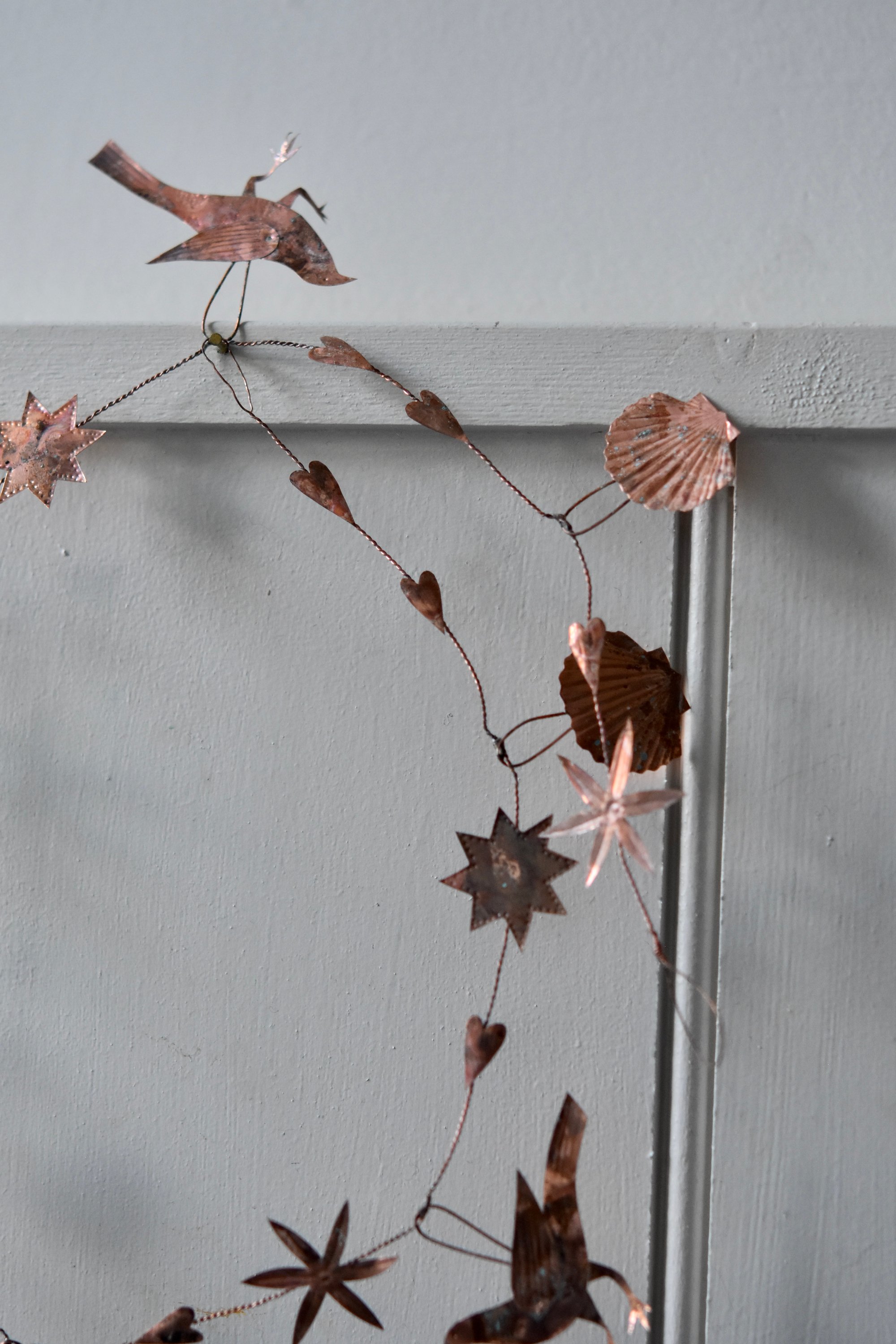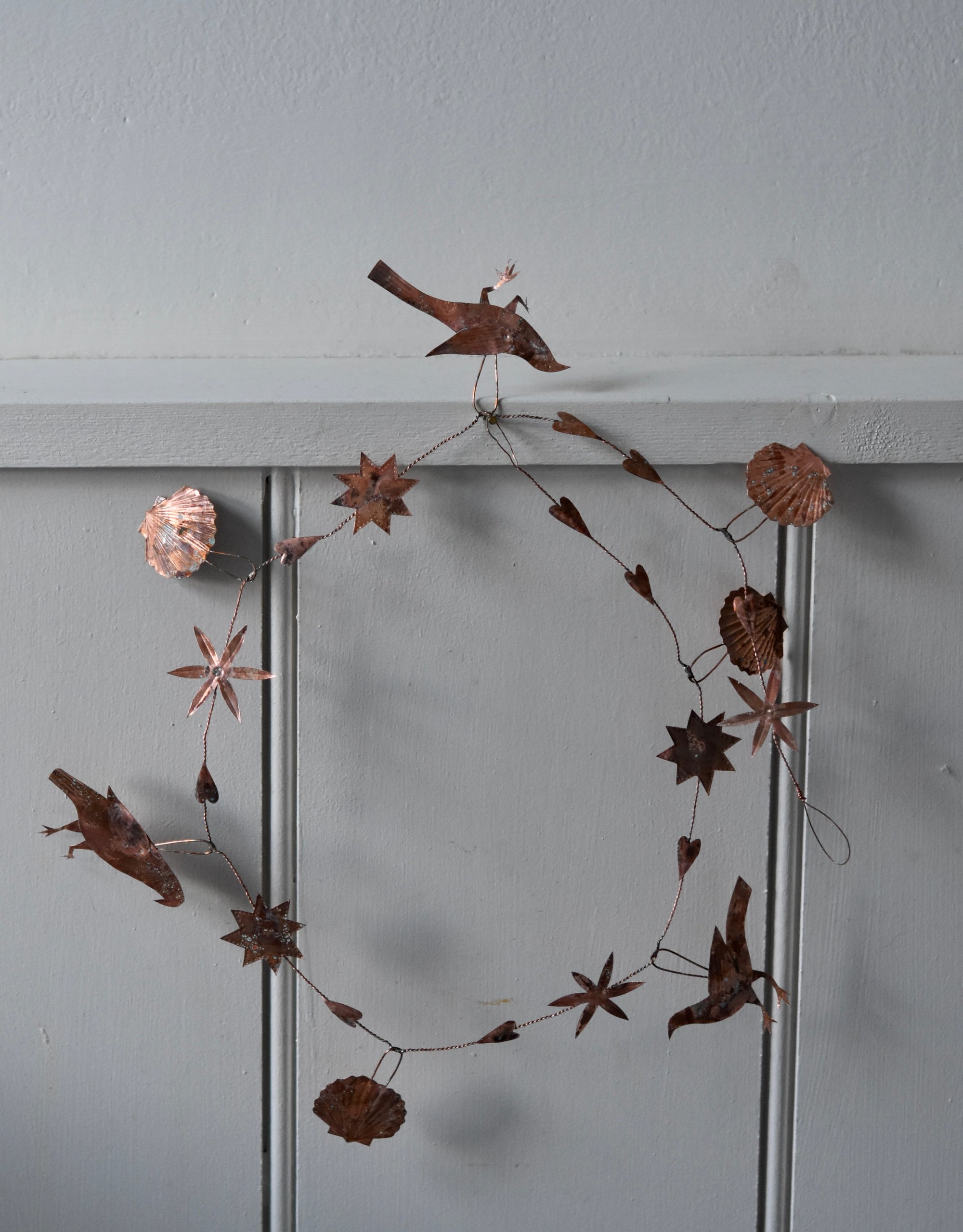 Delicate copper and wire garland with an aged patina
