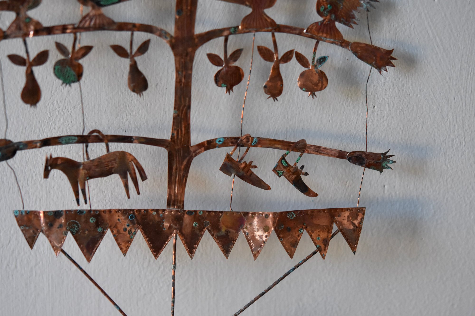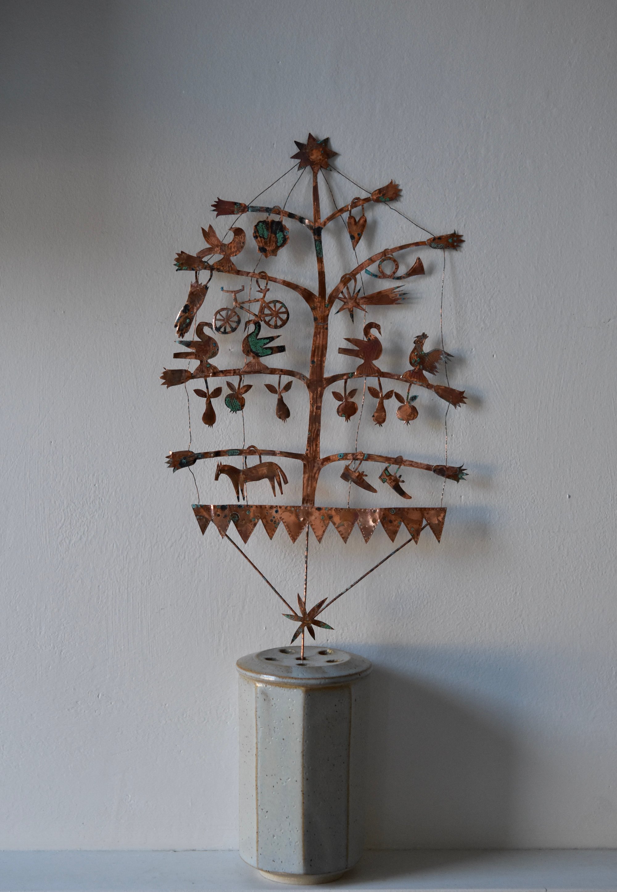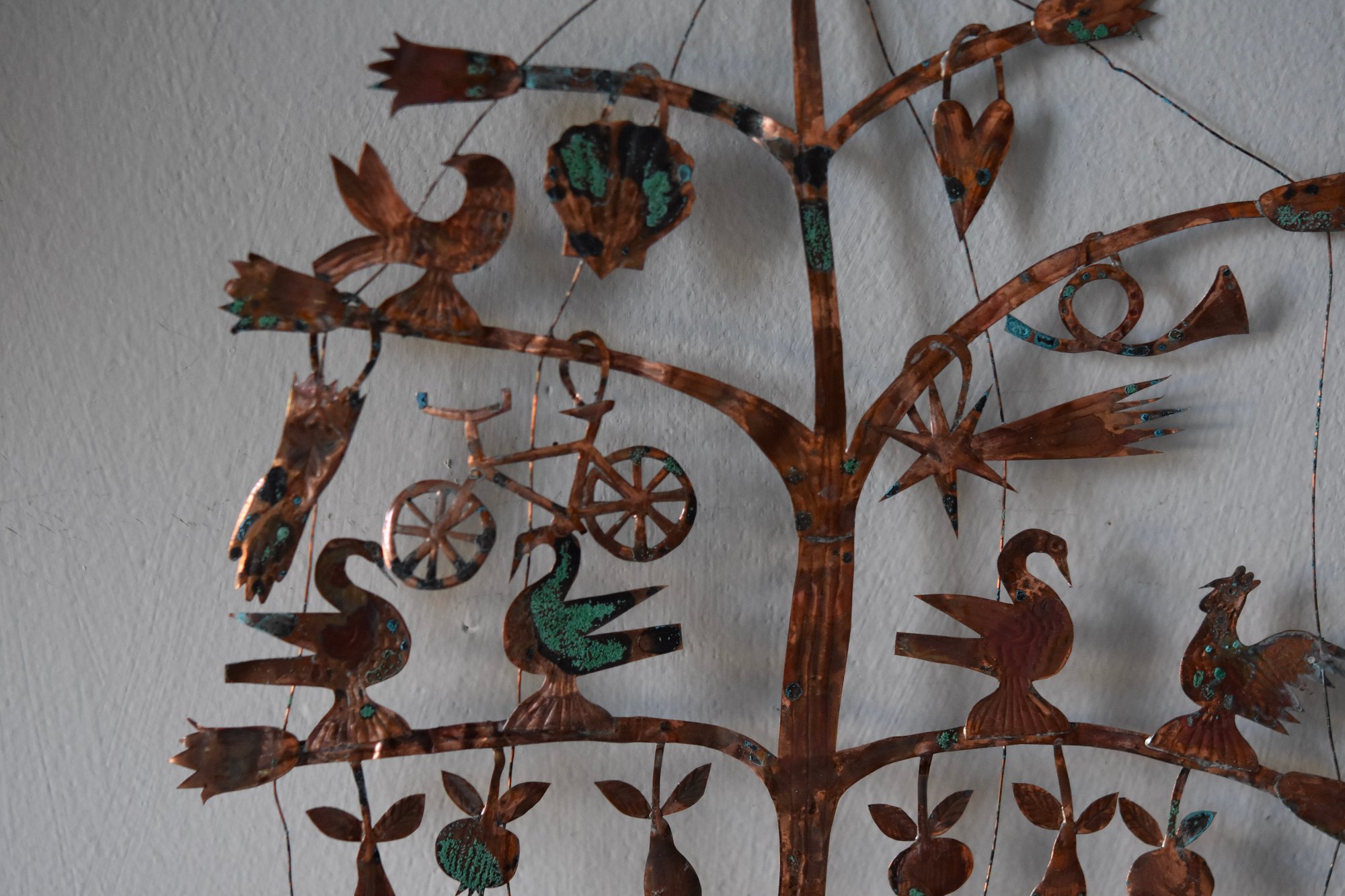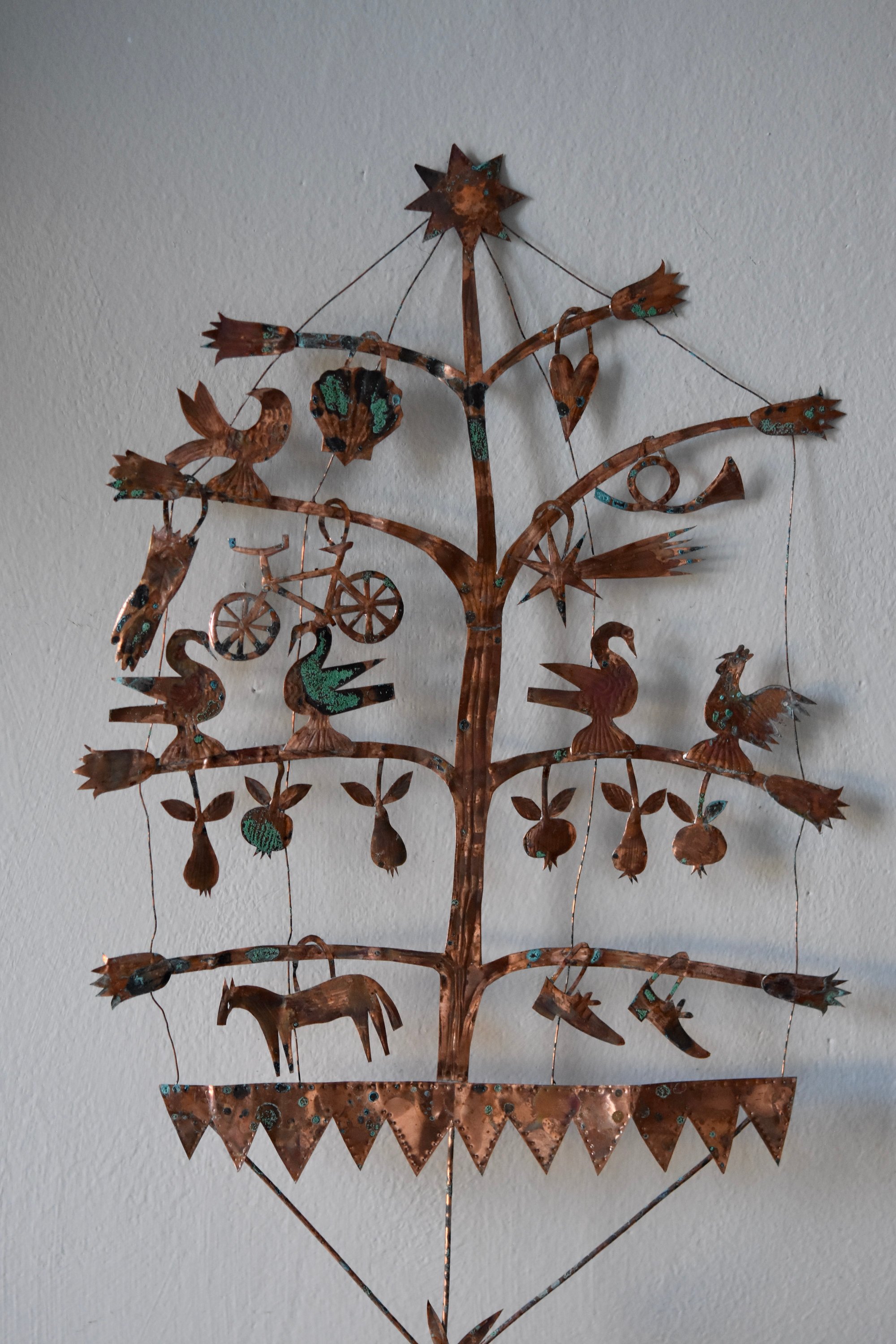Very delicate copper and wire sculpture with an aged patina