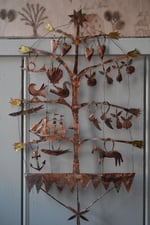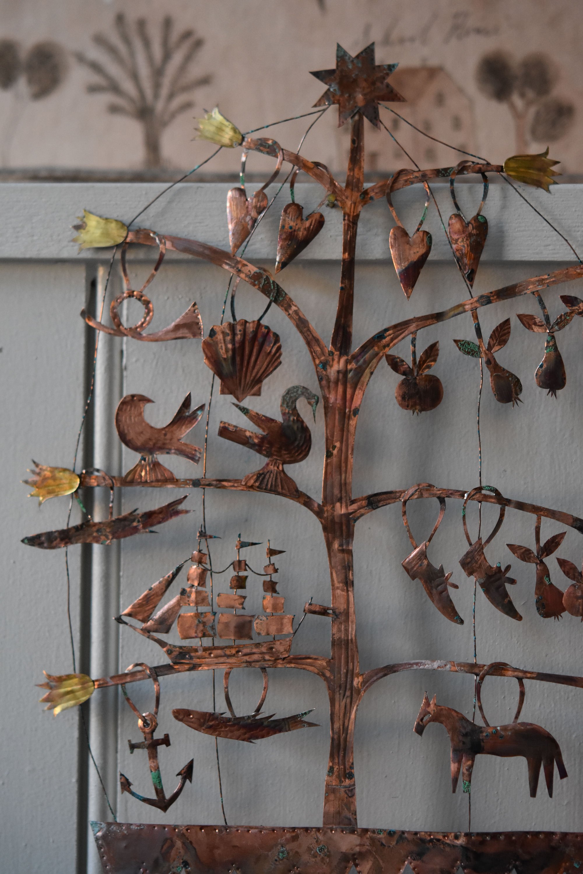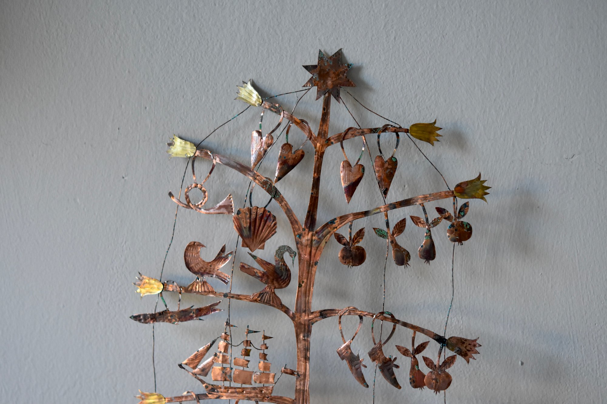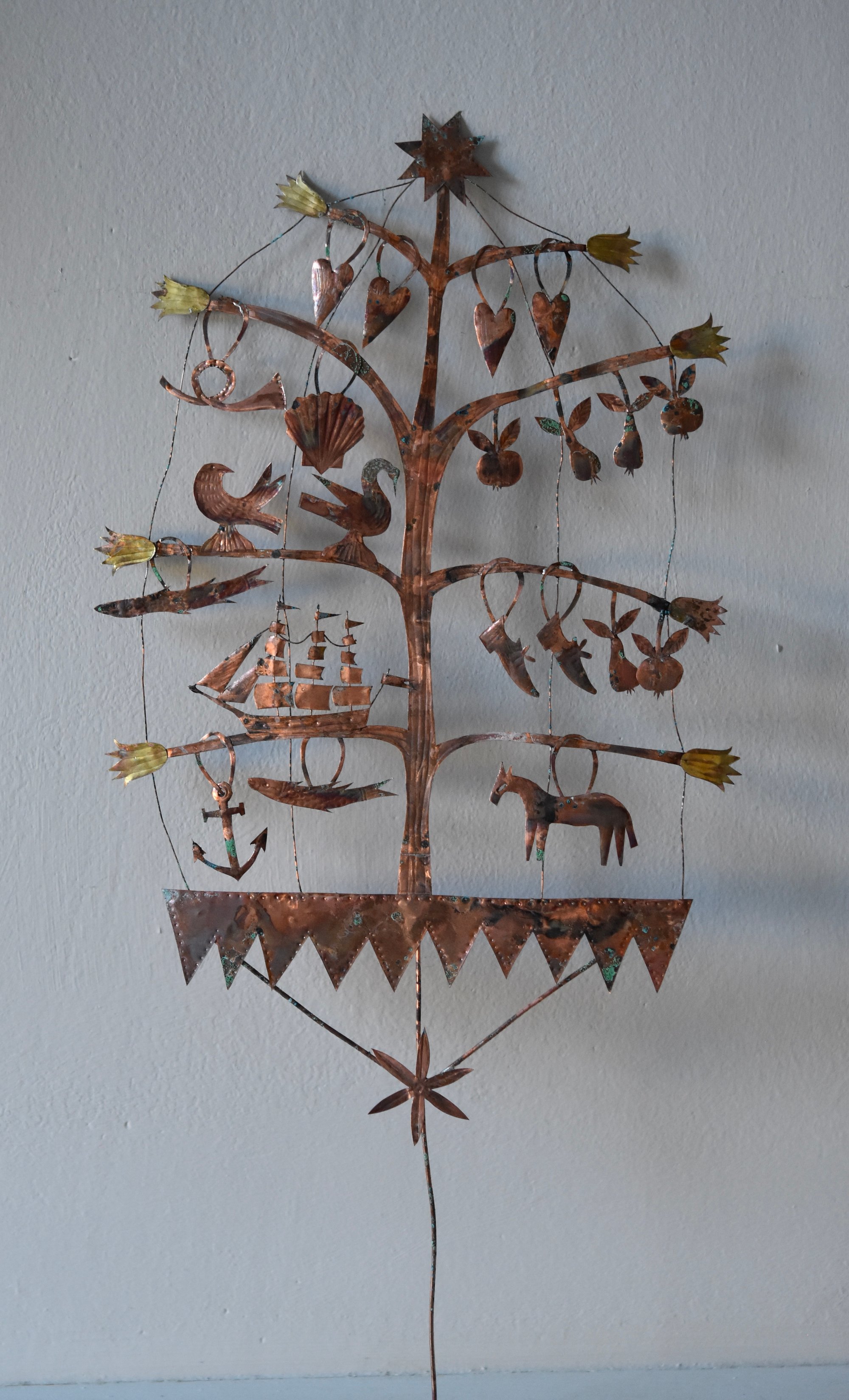 Very delicate copper and wire sculpture with an aged patina