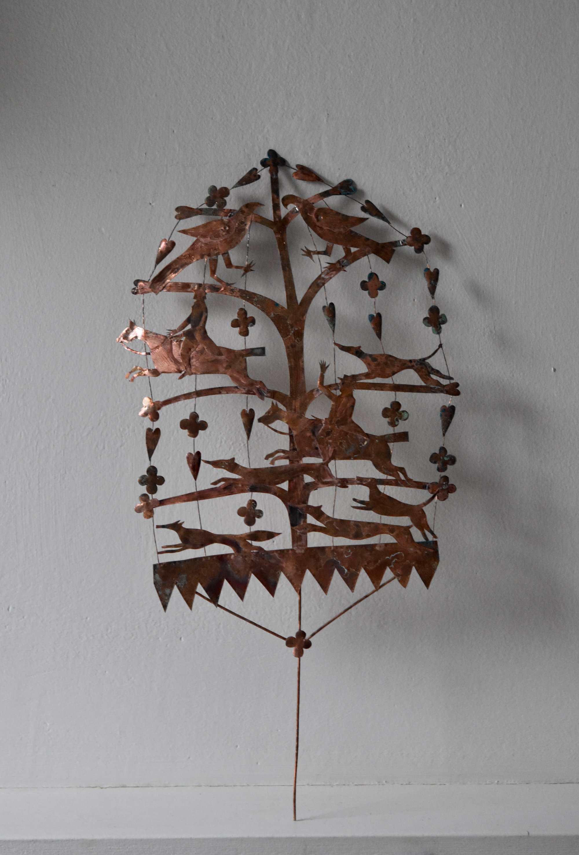 Very delicate copper and wire sculpture with an aged patina